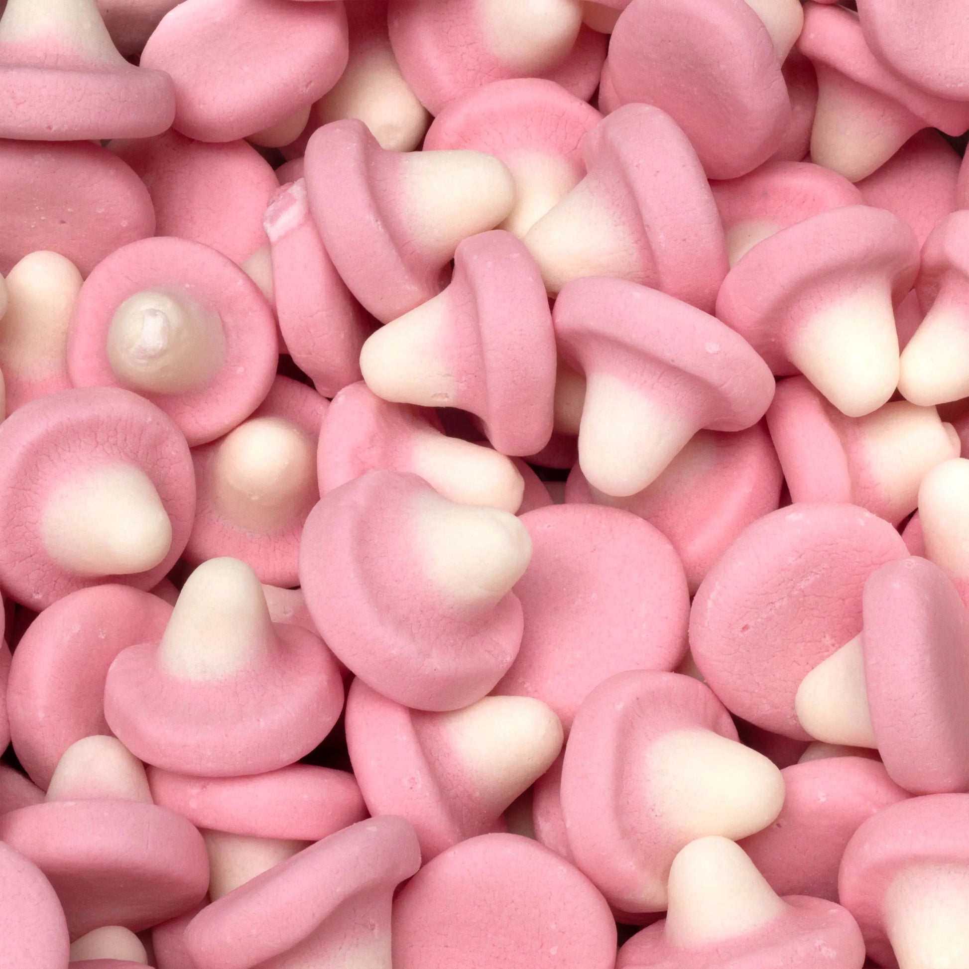 Foam Mushrooms: Glucose Syrup, Sugar, Water, Gelatine, Citric Acid, Grape Juice from Concentrate (1.25 %), Sorbitol, Pectin, Flavourings, Vegetable Oil (Coconut, Palm Kernel), Glazing Agent (Carnauba Wax), Colours (E129, E171).