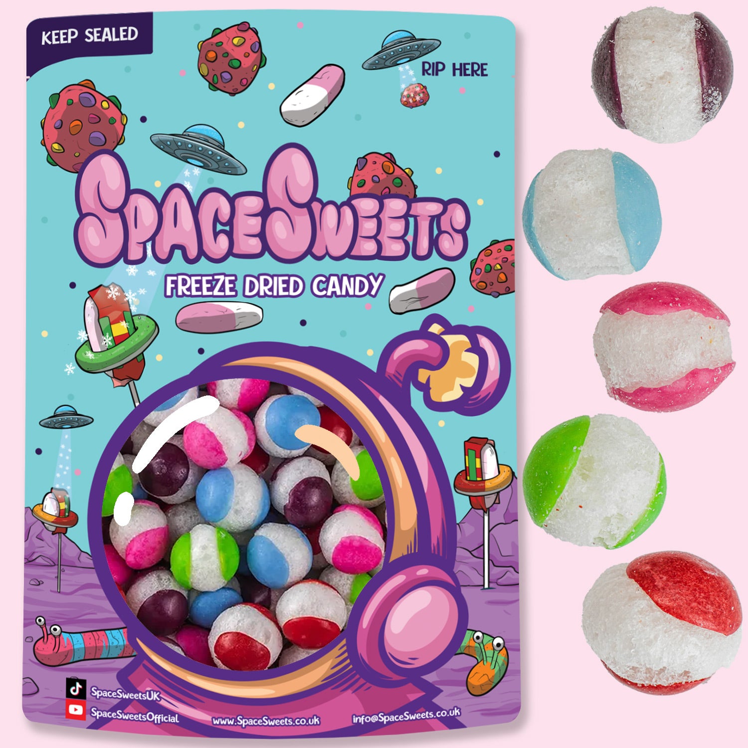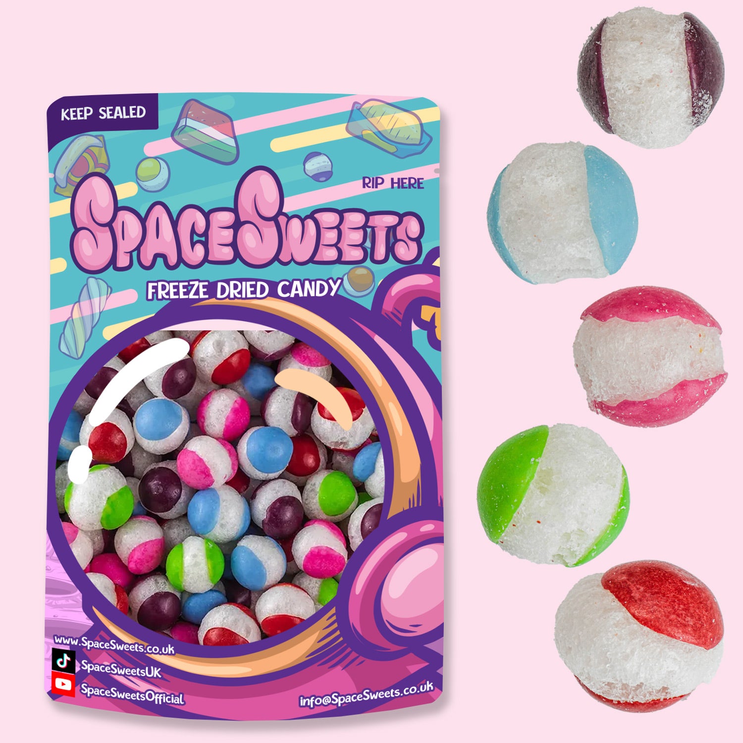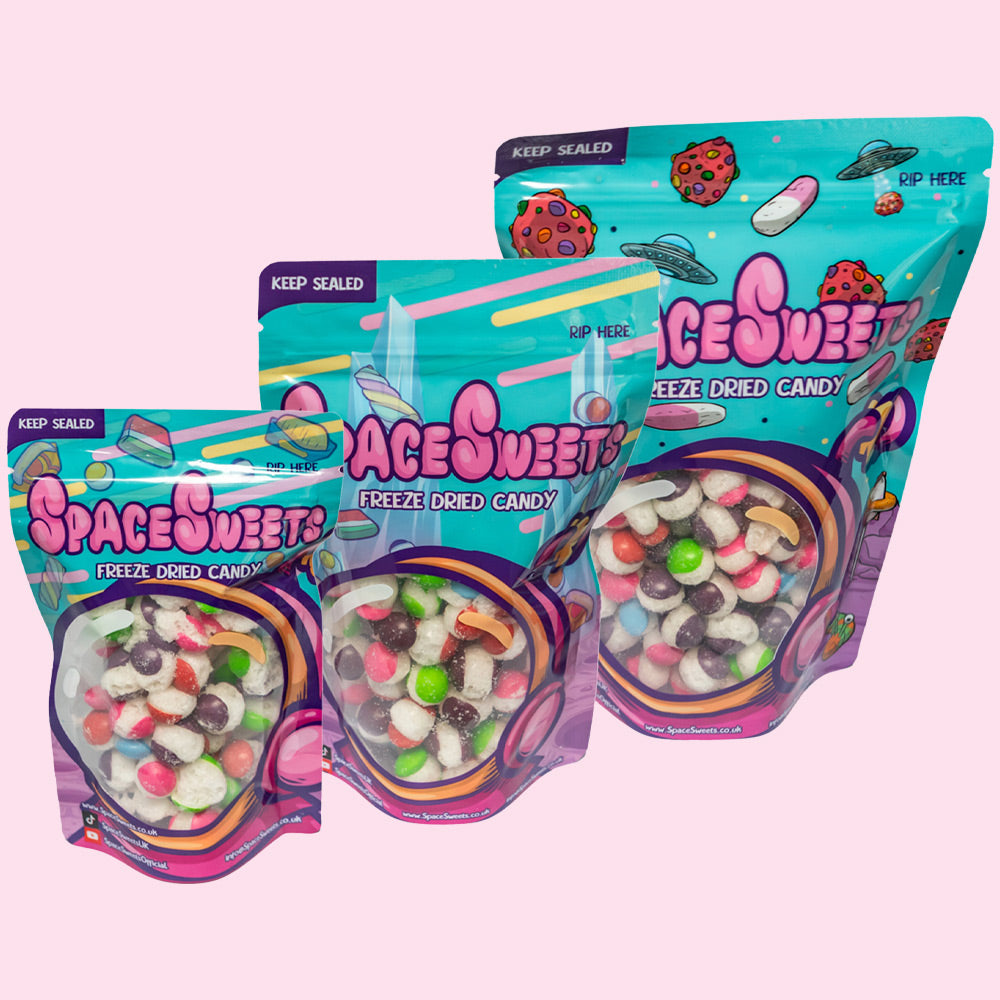 Our Fruit Comets explode like popcorn during the freeze-drying process allowing you to enjoy your favorite sweets in a whole new way. The vacuum of space pulled them apart, expanding their gooey center. You won’t have tried anything like them before and are a must-buy!