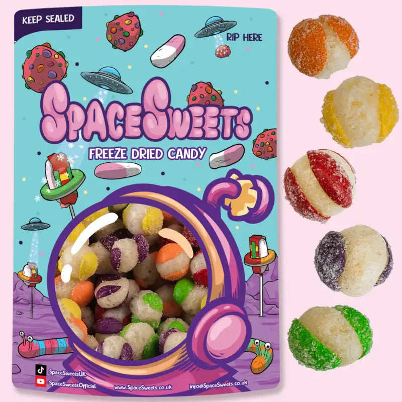 Here at SpaceSweets we specialise in SUPER SOUR FREEZE DRIED candy. We've added our own MEGA SOUR coating to these original fruit comets to really get your tastebuds pumping...