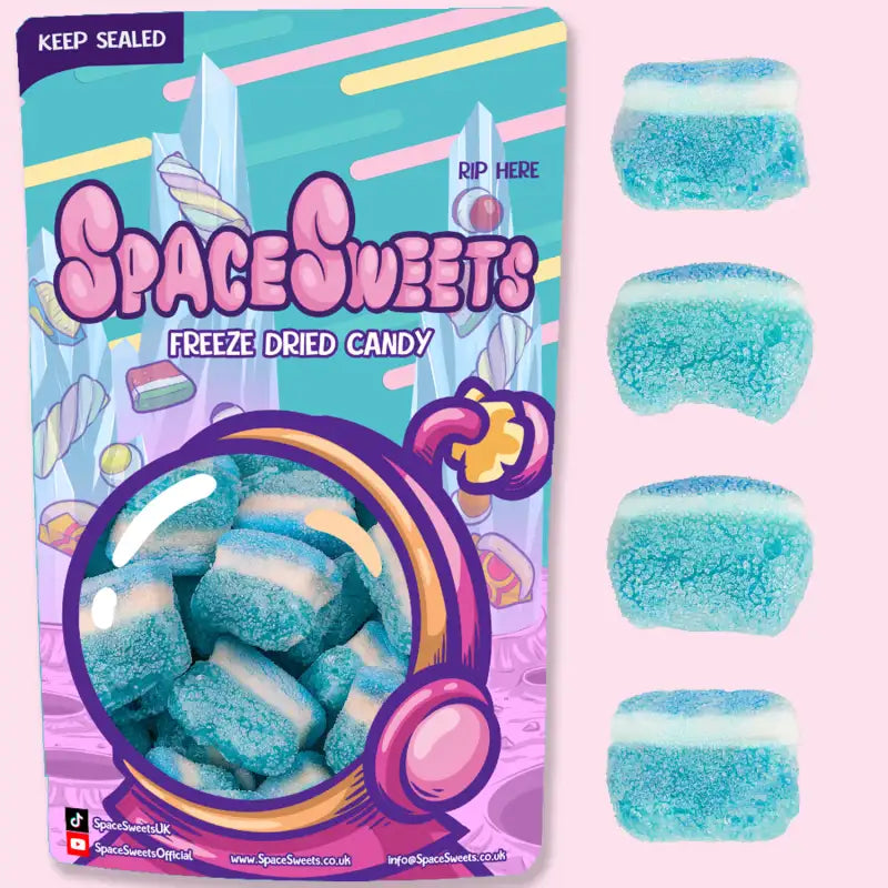 For allergens in bold: Glucose Syrup, Sugar, Water, Gelling Agents: Gelatine, Modified Potato Starch, Acidulants: E330, E270, E296. Artificial Flavour, Coating Agents: Carnauba Wax, Colours: E171, E133.