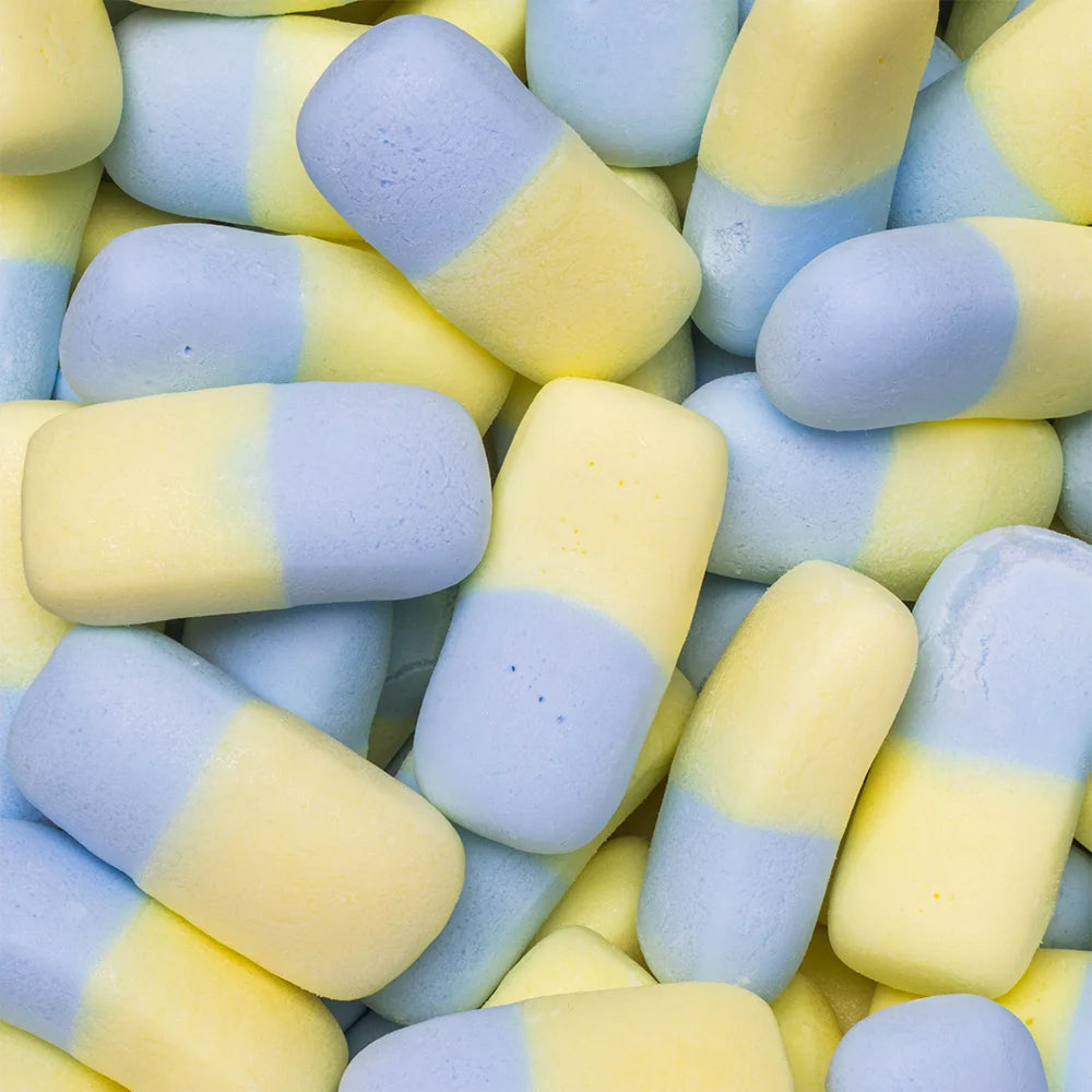 Glucose Syrup, Sugar, Gelling Agent: Gelatine; Modified Starch, Acidity Regulators: Citric Acid, Trisodium Citrate; Pectin, Spirulina, Glazing Agent: Carnaubawax; Flavourings, Colours: Curcumin, Lutein.