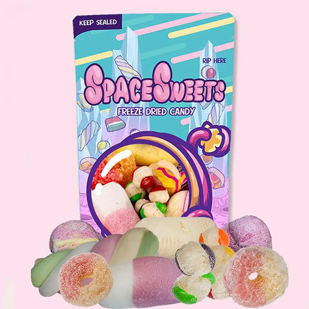 A huge 100g bag containing a mix of all of the classic freeze dried sweets including: Squashies, Lemon Refresher Blocks, Original Skittles, Fruit Salad, Mini Peach Rings and Marshmallow Twists
