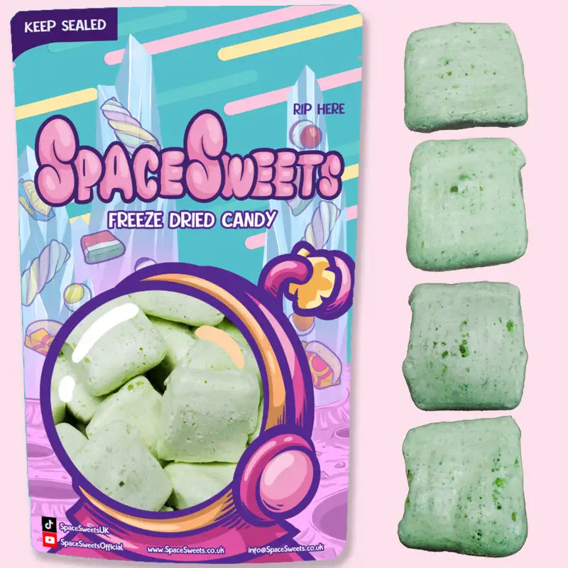 These once chewy little blocks are now airy, and crunchy. They pack an even more zestful and vibrant sour Apple flavour. enhanced by the freeze drying process. If you love extreme flavour this is the sweet for you! 🍏