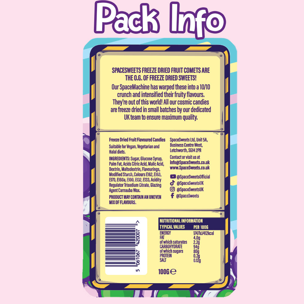 Freeze Dried Fruit Comets are the original freeze dried sweets. They're light, crunchy and pack a huge burst of fruity flavour. These fruit comets explode like popcorn during the freeze-drying process allowing you to enjoy your favorite sweets in a whole new way. The vacuum of space pulled them apart, expanding their gooey center. You won’t have tried anything like them before and are a must-buy!